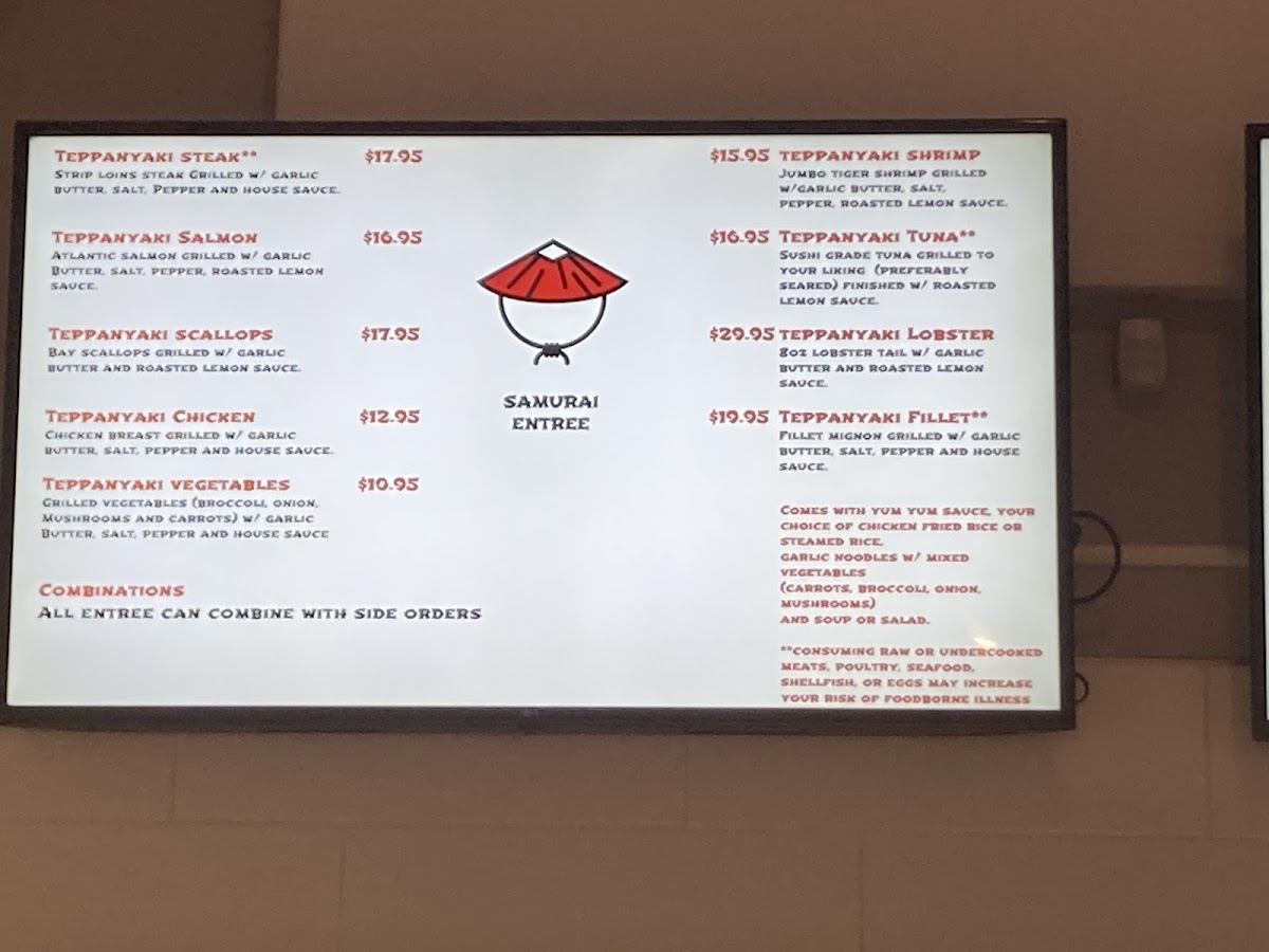 Welcome to Samurai Express Japanese Steakhouse, a culinary gem nestled in Grand Rapids, MI, where authenticity meets flavor. The menu boasts an array of teppanyaki delights that promise to tantalize your taste buds. Choose from teppanyaki steak, chicken, salmon, shrimp, or indulge in the luxurious lobster — each dish expertly prepared to order. The prices are reasonable, with entrees ranging from US$11.95 to US$38.95.